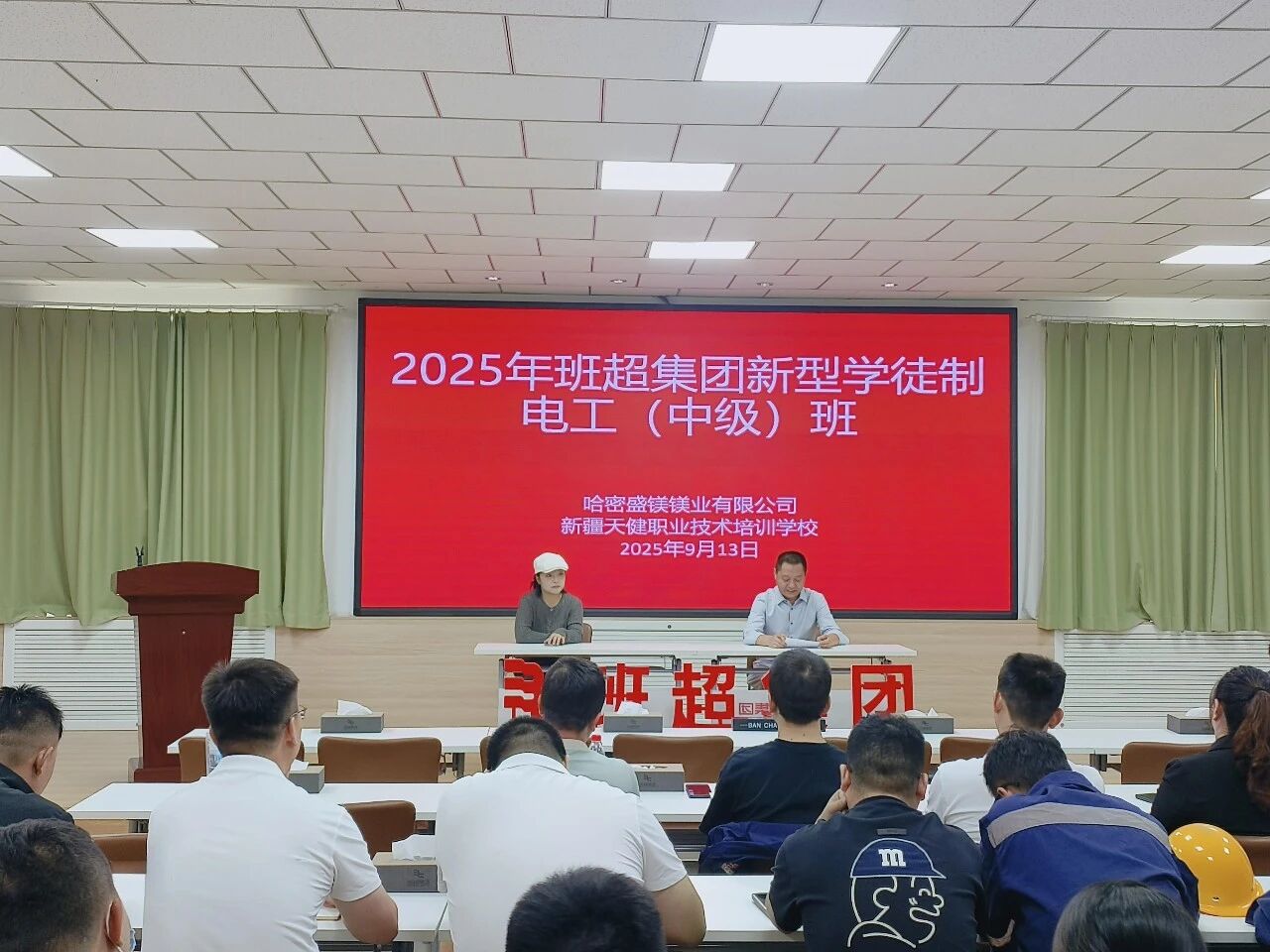 9月13日上午,班超集團(tuán)聯(lián)合新疆天健職業(yè)技術(shù)培訓(xùn)學(xué)校在盛鎂鎂業(yè)三樓會(huì)議室舉辦新型學(xué)徒制電工(中級(jí))班培訓(xùn)活動(dòng),旨在通過系統(tǒng)的知識(shí)講解,幫助員工夯實(shí)電工專業(yè)理論基礎(chǔ),筑牢職業(yè)技能發(fā)展根基,共計(jì)60余人參加此次培訓(xùn)。  企業(yè)新型學(xué)徒制培訓(xùn)是按照“政府引導(dǎo)、企業(yè)為主、院校參與”的原則,采取“企校雙制、工學(xué)一體”“雙師帶徒、交替培養(yǎng)”的一種新型學(xué)徒培養(yǎng)機(jī)制。企業(yè)新型學(xué)徒制培訓(xùn)對于班超集團(tuán)優(yōu)化高技能人才培養(yǎng)機(jī)制,加快建設(shè)知識(shí)型、技能型、創(chuàng)新型人才隊(duì)伍,加快企業(yè)青年技能人才的培養(yǎng)具有重要意義。培訓(xùn)內(nèi)容涵蓋中級(jí)電工必備的電氣控制基礎(chǔ)、電機(jī)與變壓器原理、電力系統(tǒng)基本知識(shí)等核心模塊,為員工打造系統(tǒng)的理論提升平臺(tái)。 下一步,班超集團(tuán)將繼續(xù)為廣大員工搭建學(xué)習(xí)提升平臺(tái),通過舉辦高質(zhì)量、多元化的職業(yè)培訓(xùn),提高員工技能水平和職業(yè)素養(yǎng),加快公司高技能人才梯隊(duì)建設(shè),助推企業(yè)高質(zhì)量發(fā)展。 On the morning of 13 September, Banchao Group, in partnership with Xinjiang Tianjian Vocational & Technical Training School, launched a new-style apprenticeship programme for intermediate electricians on the third-floor conference room of Shengmei Magnesium. The initiative delivers systematic lectures designed to consolidate employees’ theoretical grounding in electrical work and lay a solid foundation for vocational growth; more than 60 staff members attended. The enterprise-based apprenticeship model follows the principle of “government guidance, enterprise leadership, institutional participation” and adopts a dual-track, work-integrated format in which company mentors and college instructors coach apprentices in alternating phases. For Banchao Group, the scheme is a key lever for refining its high-skilled-talent pipeline, accelerating the build-up of a knowledgeable, skilled and innovative workforce, and fast-tracking the development of young technicians. The curriculum covers core modules required for the intermediate-electrician credential—fundamentals of electrical control, principles of motors and transformers, and essential power-system knowledge—providing employees with a comprehensive theoretical upgrade platform. Next, Banchao Group will continue to expand learning opportunities for its workforce through high-quality, diversified vocational training, raising skill levels and professional competence, speeding up the construction of a high-skilled-talent echelon, and propelling the company toward high-quality development.